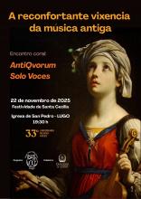 Os coros de Lugo, invitados polo prefeito de música da S.I.C.B. de Lugo, participaremos numa missa coral no dia de Santa Cecília, padroeira cristã da música, o dia 22 de novembro às 20:00, na Catedral de Santa Maria de Lugo. No cartaz figuramos todos os coros participantes. Pola nossa parte, cantaremos um Magnificat anónimo do século XVI que se atopa num dos livros de coro do arquivo catedralício. Um Magnificat de estupenda feitura cujo autor ainda não demos identificado. A não perder.